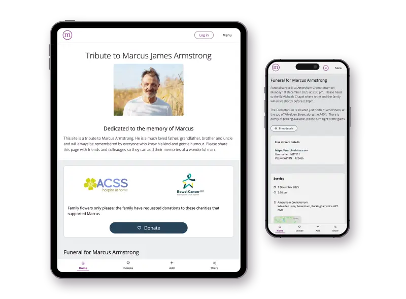 Quick to set up and easy to share, our funeral notice pages include service details, maps and donation links - giving families a single place for everything others need to know.